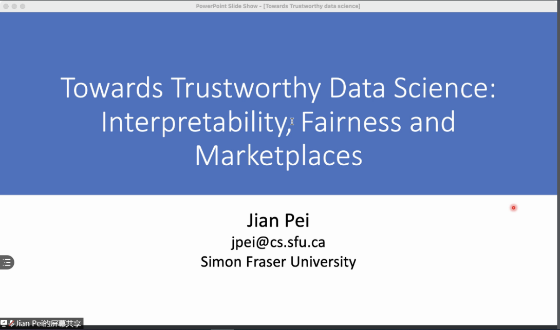 On the morning of July 16, 2021, Prof. Jian Pei, Fellow of the Royal Society of Canada, Academician of Canadian Academy of Engineering, IEEE Fellow and ACM Fellow from Simon Fraser University was invited to deliver a speech at the "Online Lecture Hall" on the topic of " Towards Trustworthy Data Science: Interpretability, Fairness and Marketplaces". The series of online academic lectures were jo...