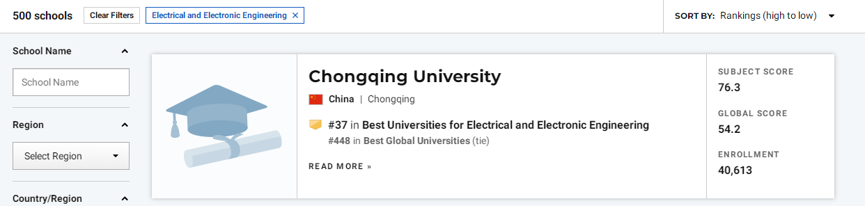 The Discipline of Electrical and Electronic Engineering of Chongqing University Ranks a New High in 2022 U.S.News&World Report