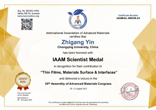 Professor Yin Zhigang from the School of Electrical Engineering has been honored with the Scientist Medal by the International Association of Advanced Materials (IAAM).