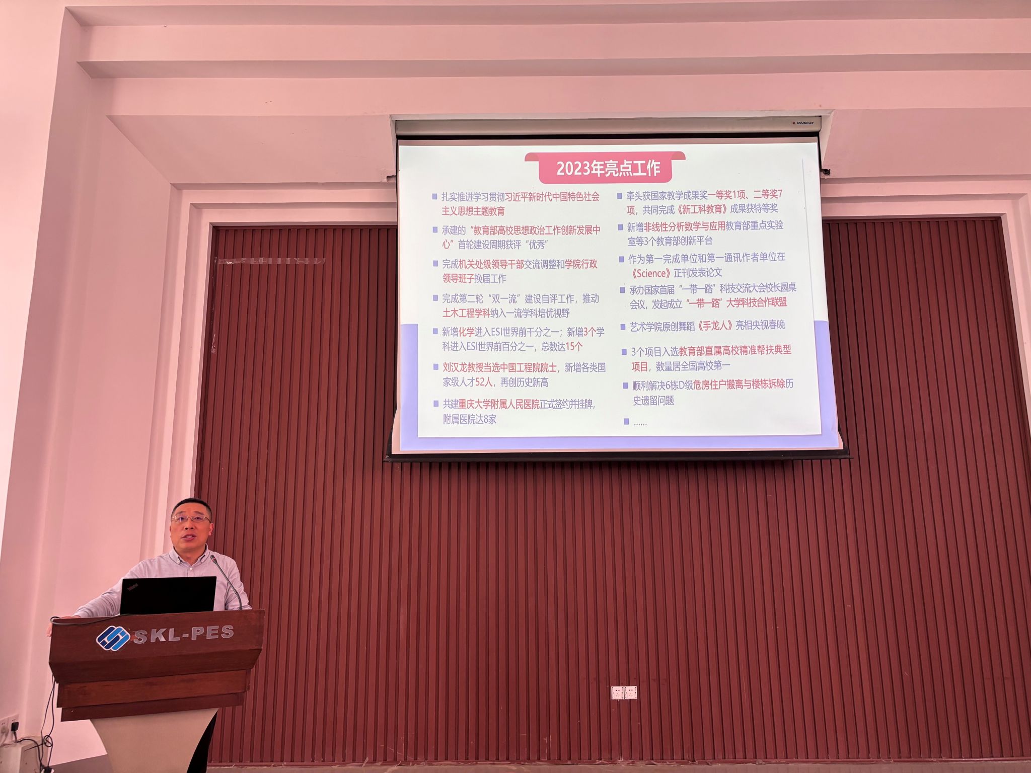 2024年3月28日下午,猫都论坛 在六教6117报告厅召开2023-2024学年第二学期全体教职工大会。会议传达了学校最新会议精神并通报部署了学院近期工作安排等。学院党委书记胡建林,院长谢开贵,党委副书记王晓静、吴嘉,副院长杜雄、杨鸣,输变电装备技术全国重点实验室副主任李辉、曾礼强,国家野外科学观测研究站专职副站长张志劲出席会议。大会由王晓静副书记主持。胡建林传达了王树新校长在2024年春季学期开学干部大会上...