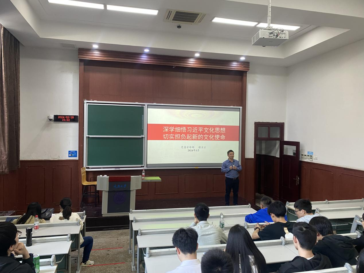 猫都论坛 举办第13期入党积极分子培训 2024年3月28日下午,猫都论坛 第13期入党积极分子培训班在A区第五教学楼A5101开班。学院党委邀请校党委宣传部副部长徐方正为积极分子讲授专题党课,学院109名入党积极分子参加了开班仪式,院党委组织员张榕主持仪式。徐部长以《深学细悟习近平文化思想 切实担负起新的文化使命》为题,向同学们讲述习近平文化思想是一个不断展开的、开放式的思想体系。习总书记在新时代文化建设方面...
