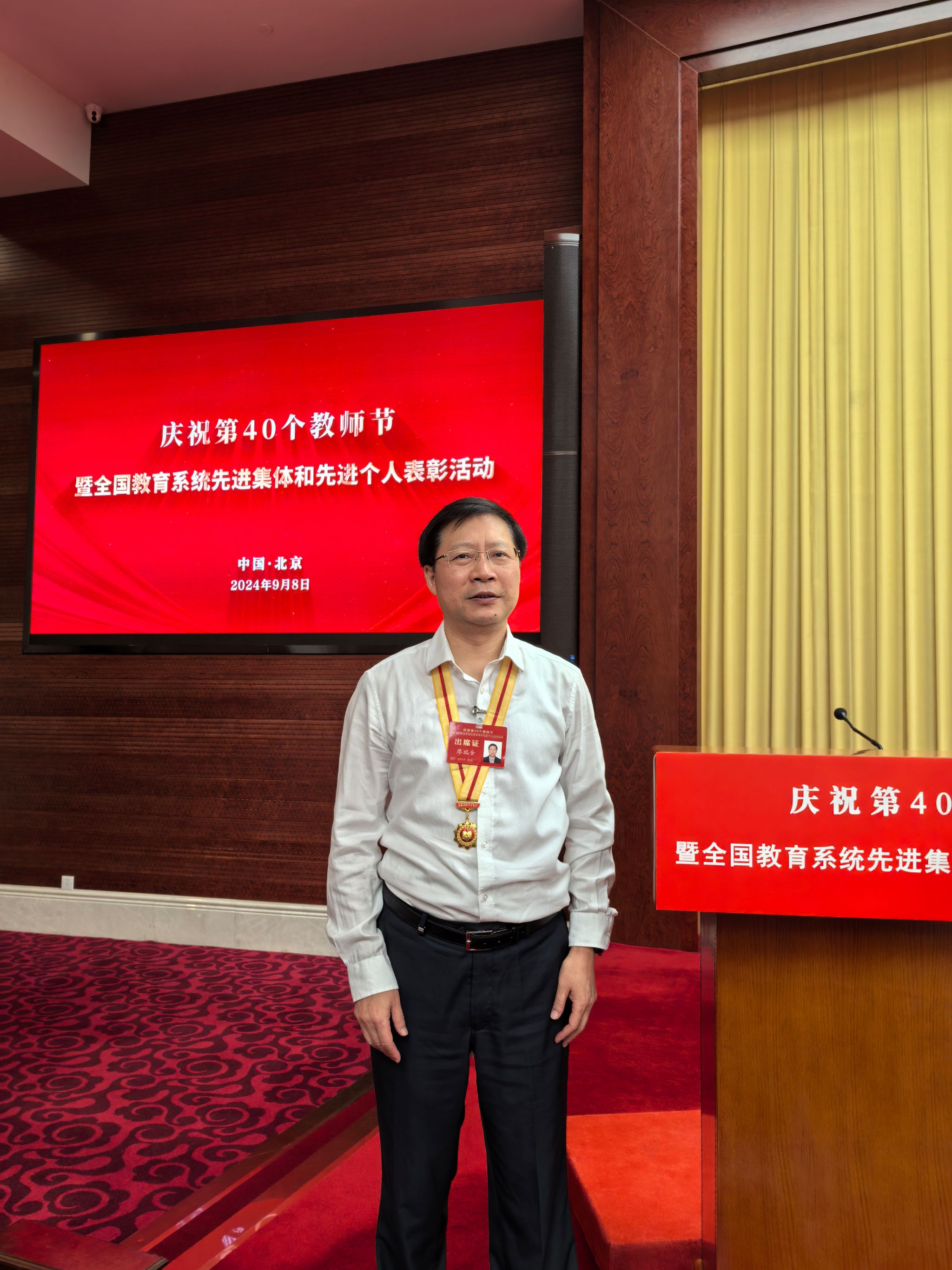 在中华人民共和国成立75周年和第40个教师节到来之际,为大力弘扬教育家精神,营造全社会尊师重教浓厚氛围,激励全国广大教师和教育工作者落实立德树人根本任务,积极投身教育强国建设,9月8日,庆祝第40个教师节暨全国教育系统先进集体和先进个人表彰活动在京举行,585个单位、1790人受到表彰。我院廖瑞金教授作为国家级教学成果奖获得者代表受邀参加了本次表彰活动。2023年,由廖瑞金教授牵头的“‘双向驱动、跨界融合’创新...