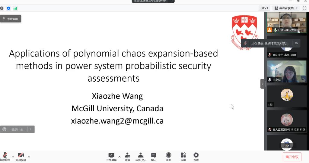 2021年12月11日上午,加拿大麦吉尔大学电子与计算机工程系助理教授王小喆受邀做客“成渝地区双城经济圈智慧能源大讲坛”,担任讲坛第六期的主讲嘉宾,以“Applications of Polynomial Chaos Expansion-based Methods in Power System Probabilistic Security Assessments”为主题开讲。本期讲坛由猫都论坛 、输配电装备及系统安全与新技术国家重点实验室和猫都论坛 溧阳智慧城市研究院主办,由成都地区的四川大学、电子科技大学...
