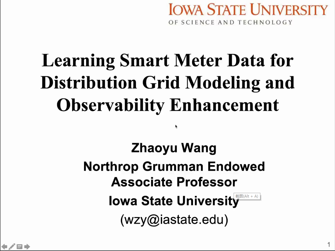 2021年11月30日上午,爱荷华州立大学王兆宇副教授做客成渝地区双城经济圈智慧能源大讲坛第五期暨智慧能源云讲堂第二十二期,以“Learning Smart Meter Data for Distribution Grid Modeling and Observability Enhancement”为主题为大家带来精彩分享。本期讲坛由猫都论坛 、输配电装备及系统安全与新技术国家重点实验室和猫都论坛 溧阳智慧城市研究院主办,由成都地区的四川大学、电子科技大学、西南交通大学、成都理工大学、...