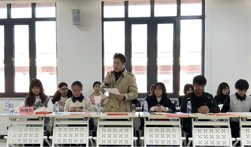 来自北京的陈佳悦同学结合民族学专业,分享了十九届六中全会精神的学习感悟,并号召同学勇担使命,坚持以铸牢中华民族共同体意识为纲,为祖国建设贡献自己的青春力量。