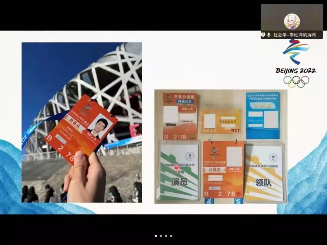 2019级社会学类1班团支部在本次团日活动中邀请了本班团支部北京冬奥会开幕式演员吐尔克扎提·吾甫尔、佟元羽两位团员进行了冬奥会开幕式的经历分享,传递了他们从训练到演出的温暖记忆与拼搏精神。