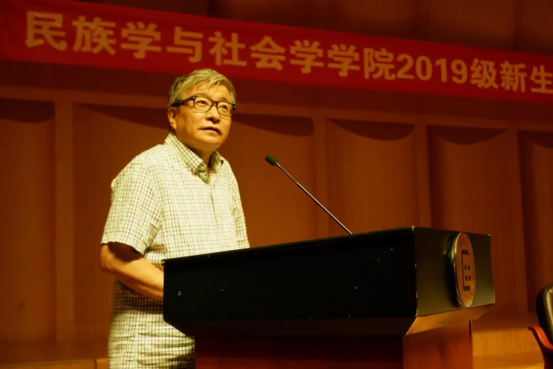 民族学、社会学、考古学等学科的优秀传统,阐释了学术传承的重要意义和不同学科之间携手发展学术共同体的理念。此外,他还强调了“田野”的重要性,鼓励同学们在田野中发现过去,阅读社会,在文明互鉴背景下探讨不同文化之间的美美与共的相处之道。他还尤其强调了对于心态的研究,谈及了人类发展史上的四个重要时段的不同心态。最后,麻国庆副校长提出了对新生的期待,希望大家更加关注全球化、国际化,并且做到习近平总书记所要求的“爱国、立志、求真、力行”,成为社会栋梁,为国家建设添砖加瓦。