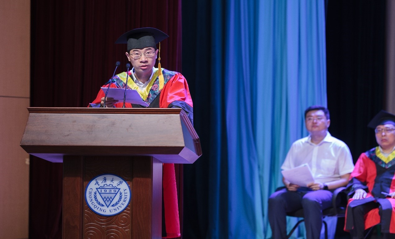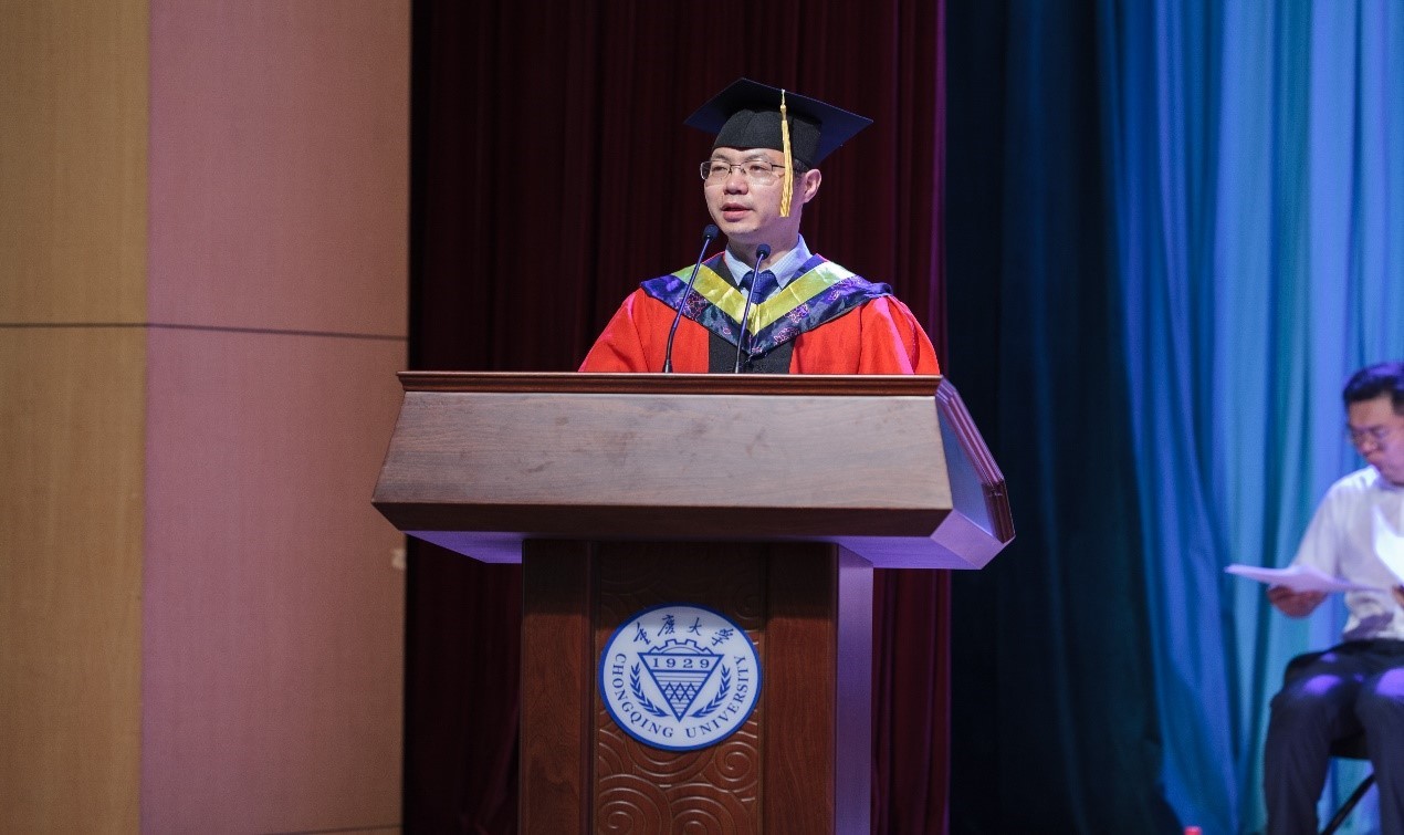 Professor Hu Bo, as one of the teacher representatives, delivered a speech at the ceremony. He highlighted the importance of doing research in a down-to-earth manner for our graduates.