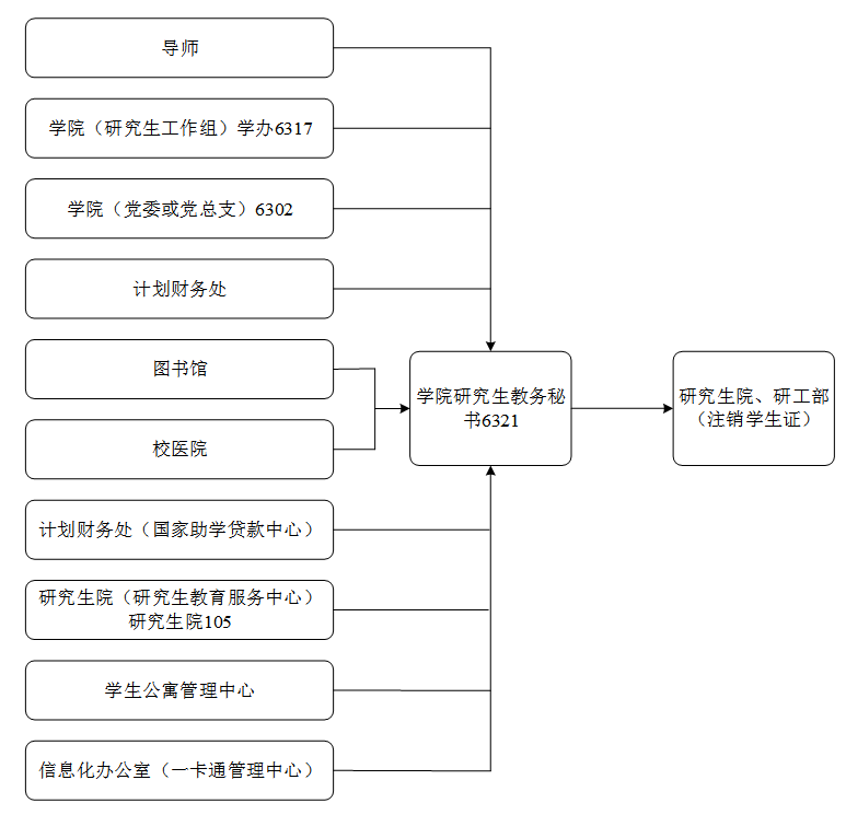 1.注销学生证(须携带学生证) 2.其他离校相关事项 |