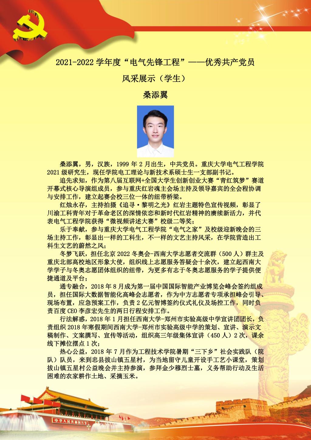 【党员风采】电工理论与新技术系硕士生一支部桑添翼
