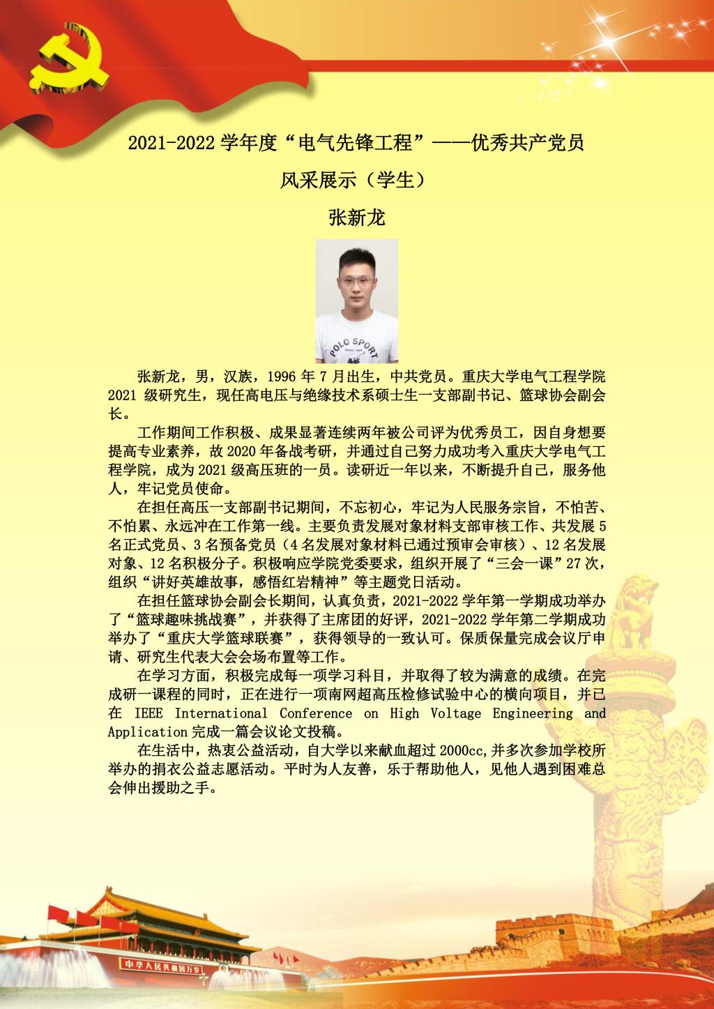 【党员风采】高电压与绝缘技术系硕士生一支部张新龙