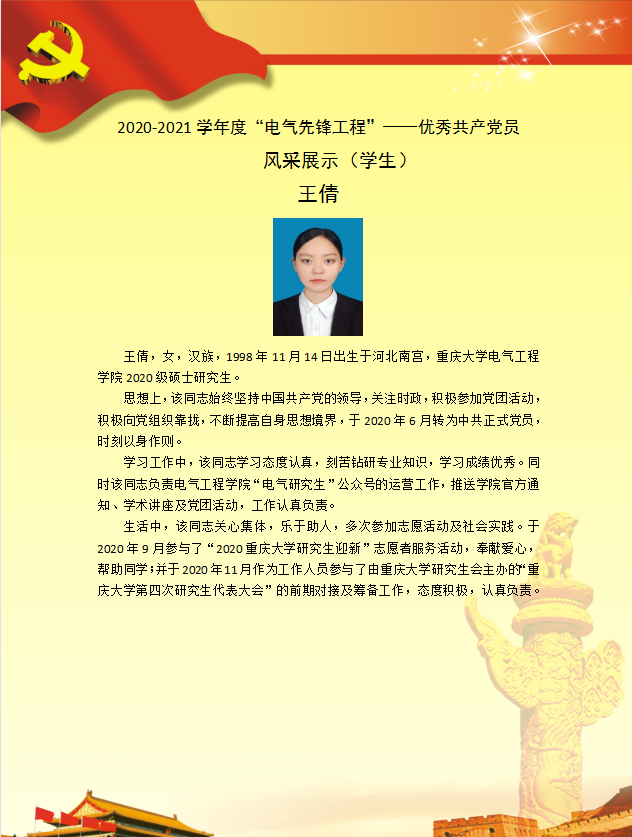 【党员风采】电力电子与电力传动硕士生一支部王倩