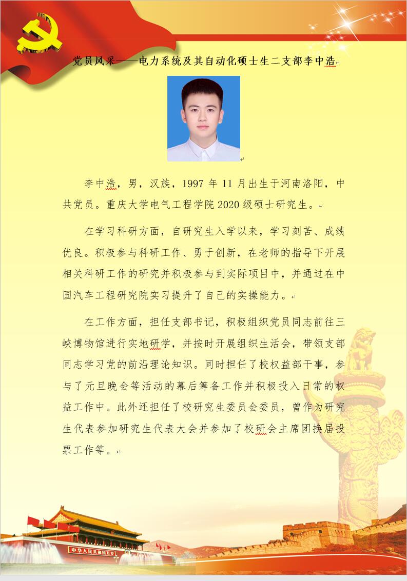【党员风采】电力系统及其自动化硕士生二支部李中浩