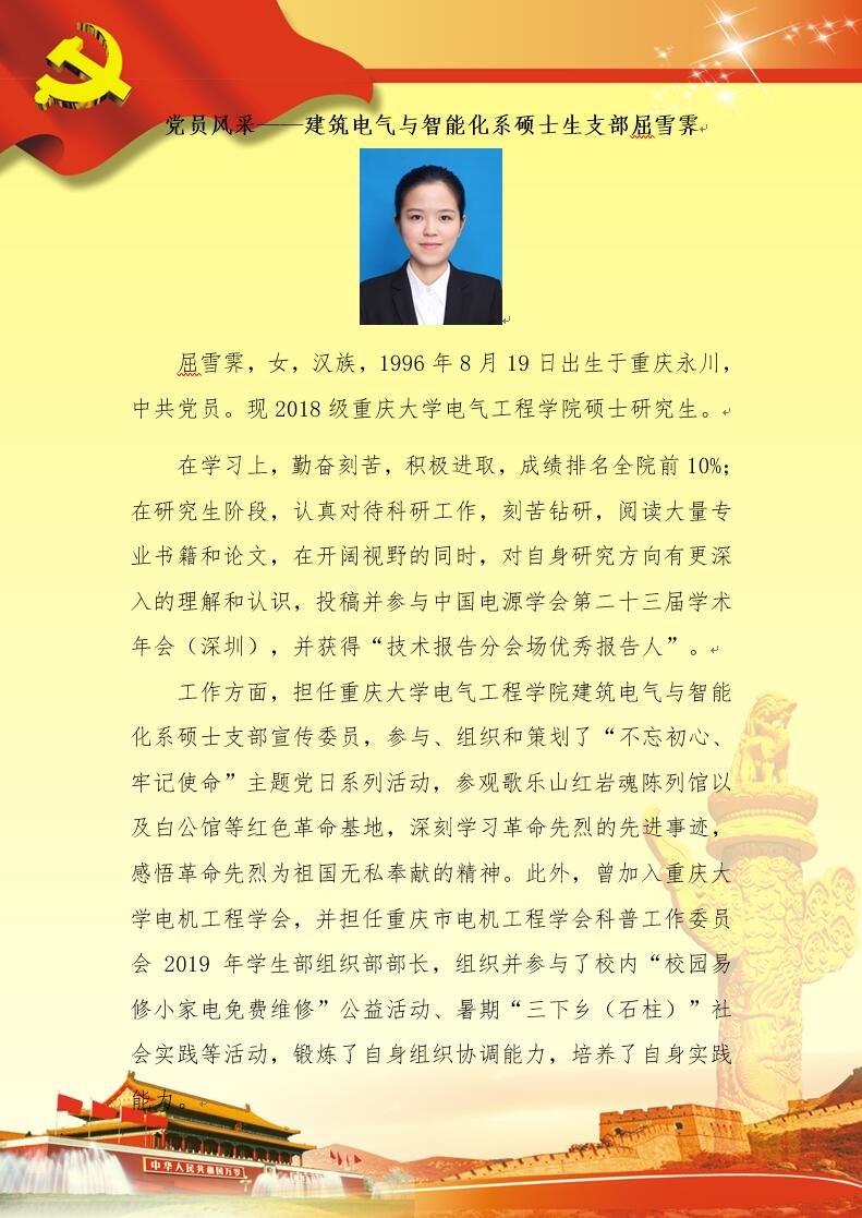 【党员风采】建筑电气与智能化系硕士生支部屈雪霁