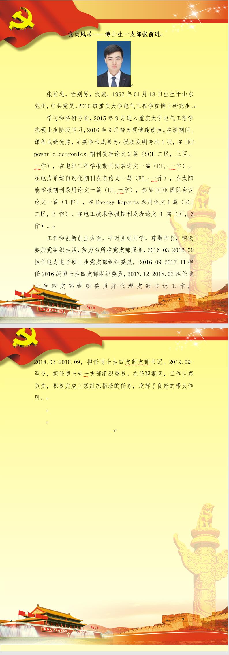 【党员风采】博士生一支部张前进