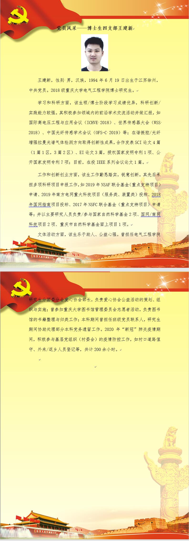 【党员风采】博士生四支部王建新