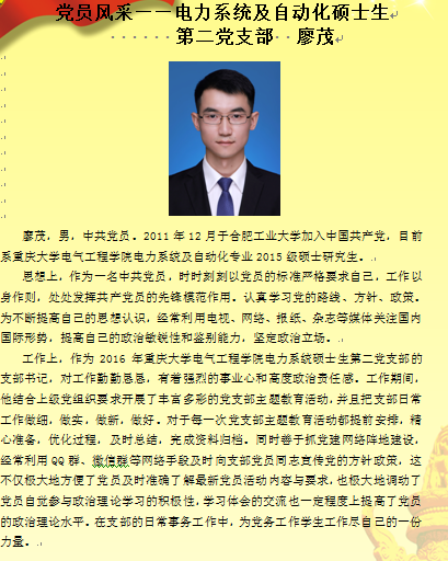 【党员风采】电力系统及自动化硕士生第二党支部-廖茂