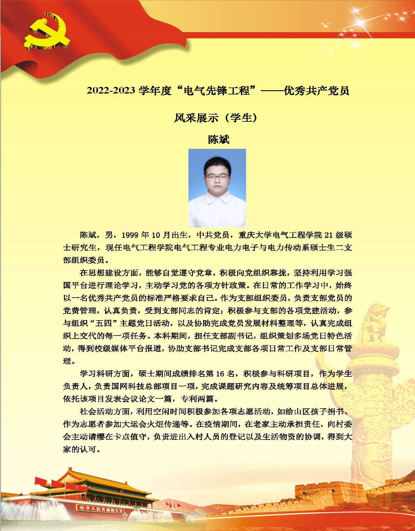 【党员风采】电工理论与新技术系硕士生一支部陈俊欣