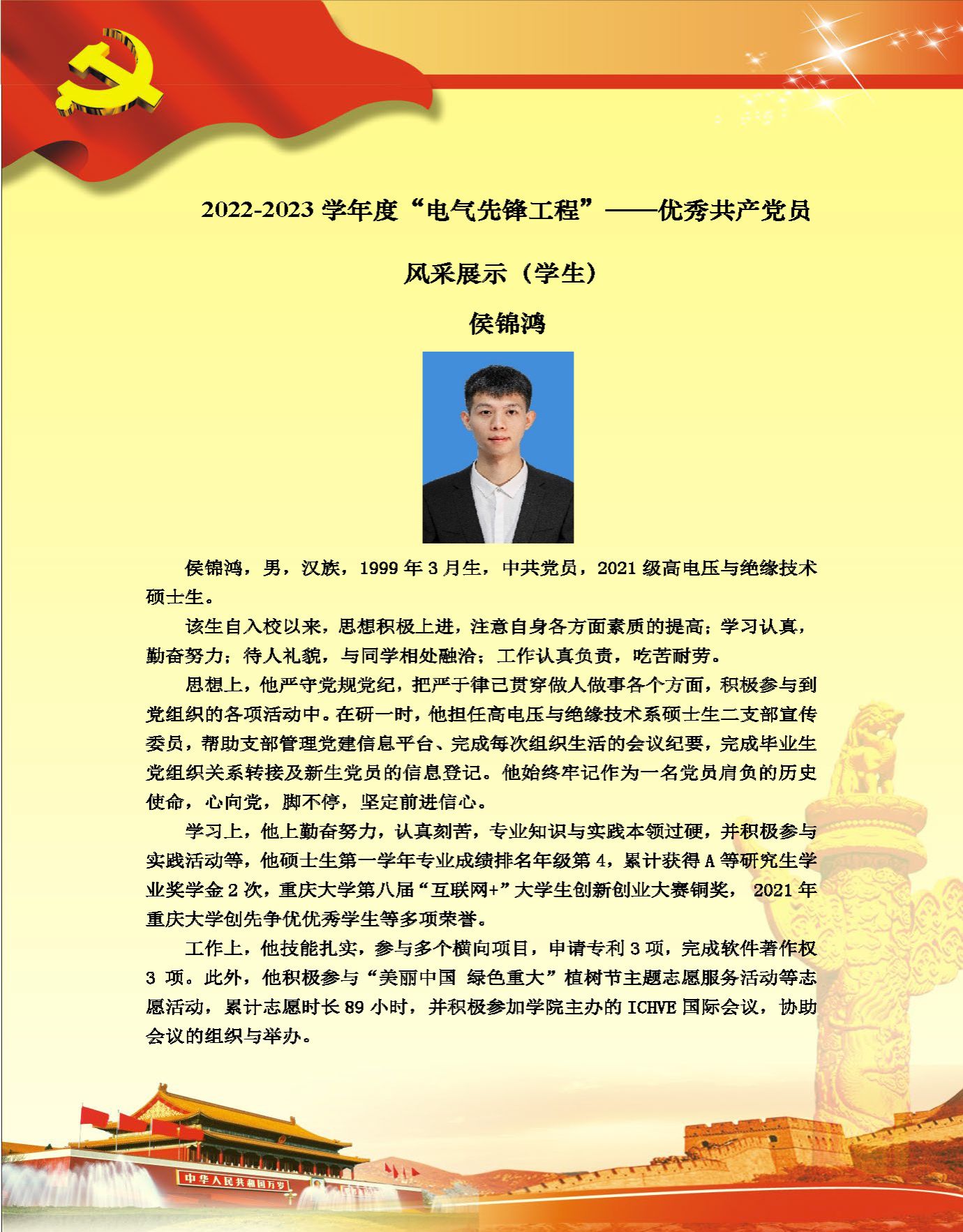 【党员风采】高电压与绝缘技术系硕士生二支部侯锦鸿