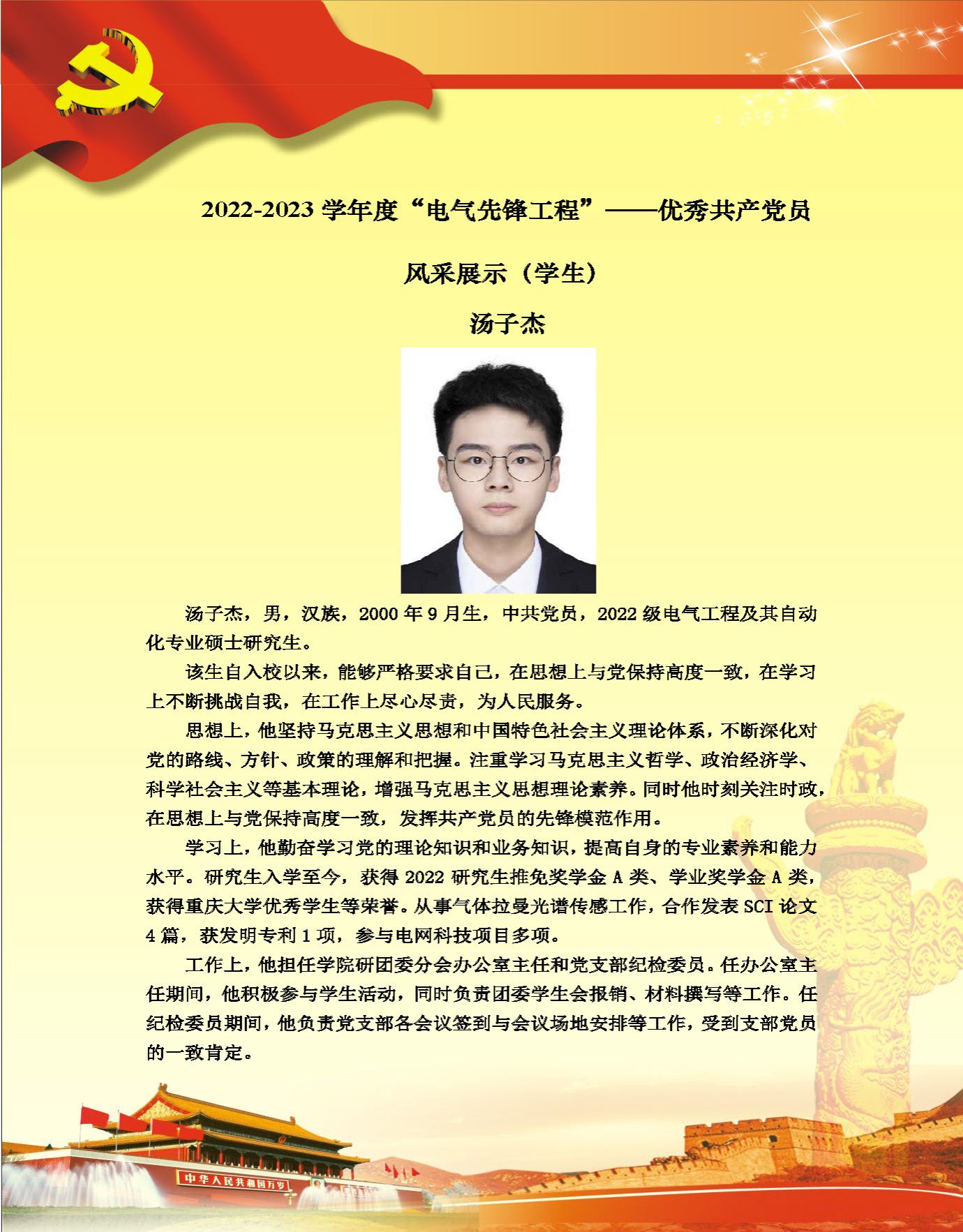 【党员风采】高电压与绝缘技术系二支部汤子杰