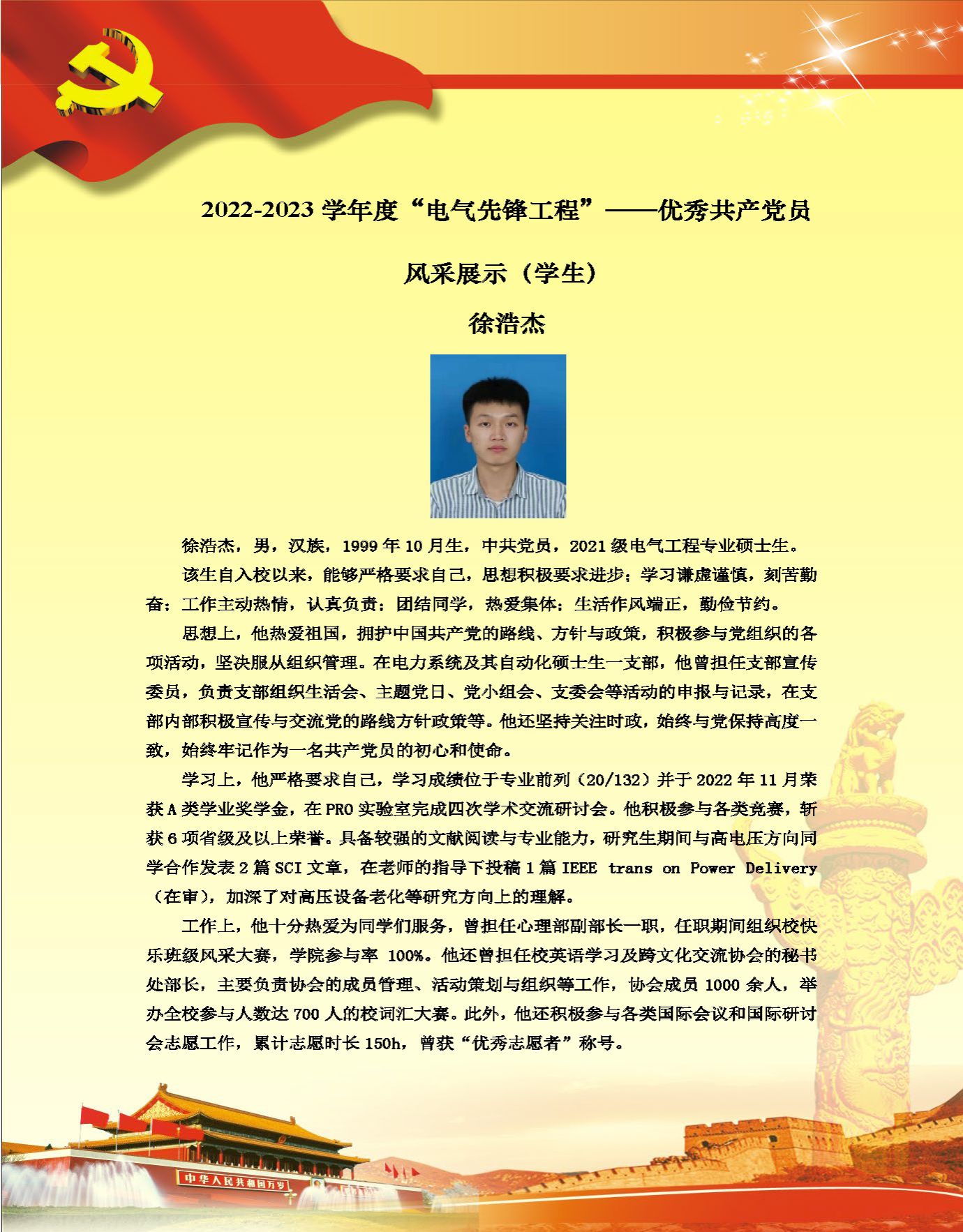 【党员风采】电力系统及其自动化系硕士生一支部徐浩杰
