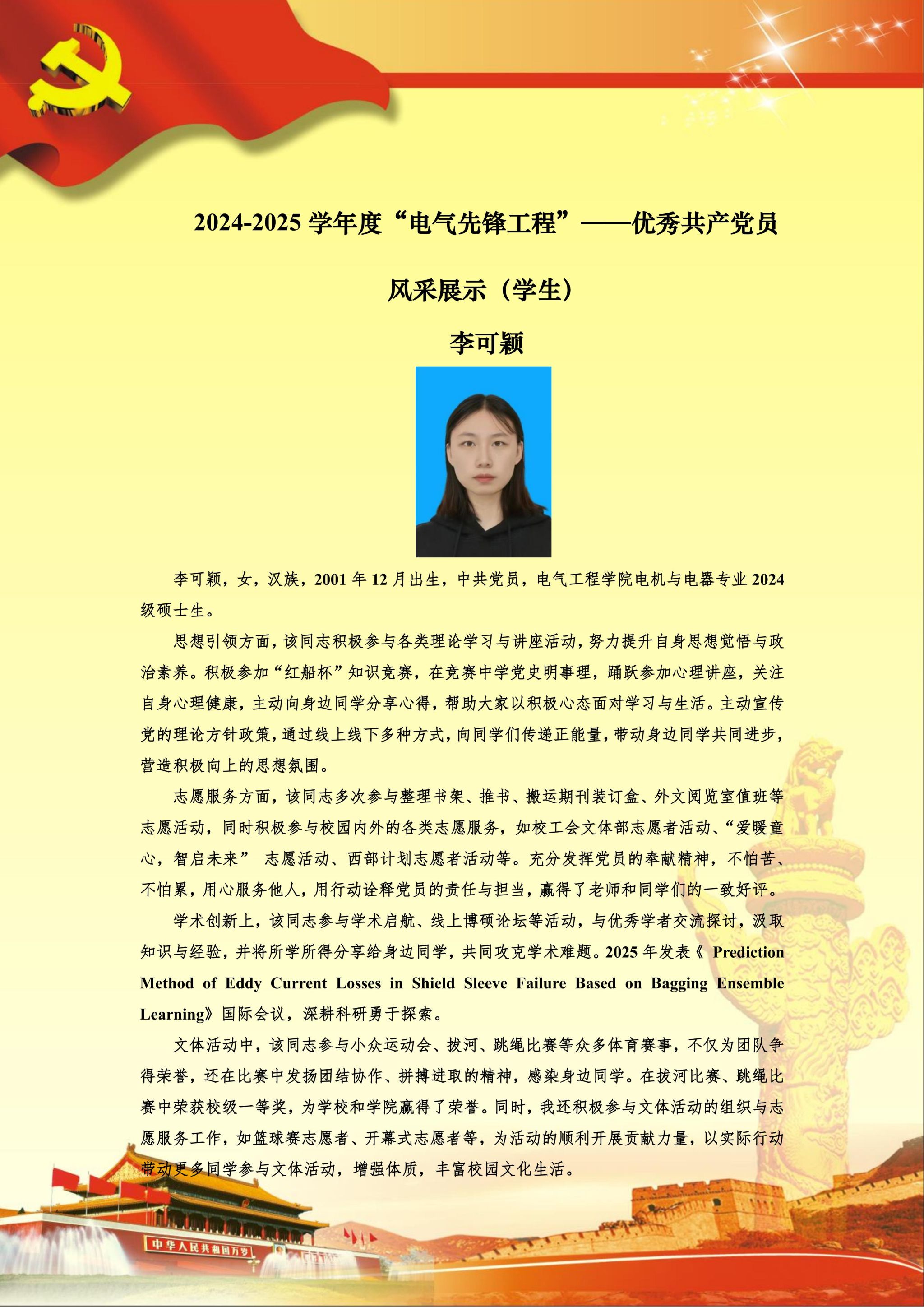 【党员风采】电机与电器硕士生支部李可颖