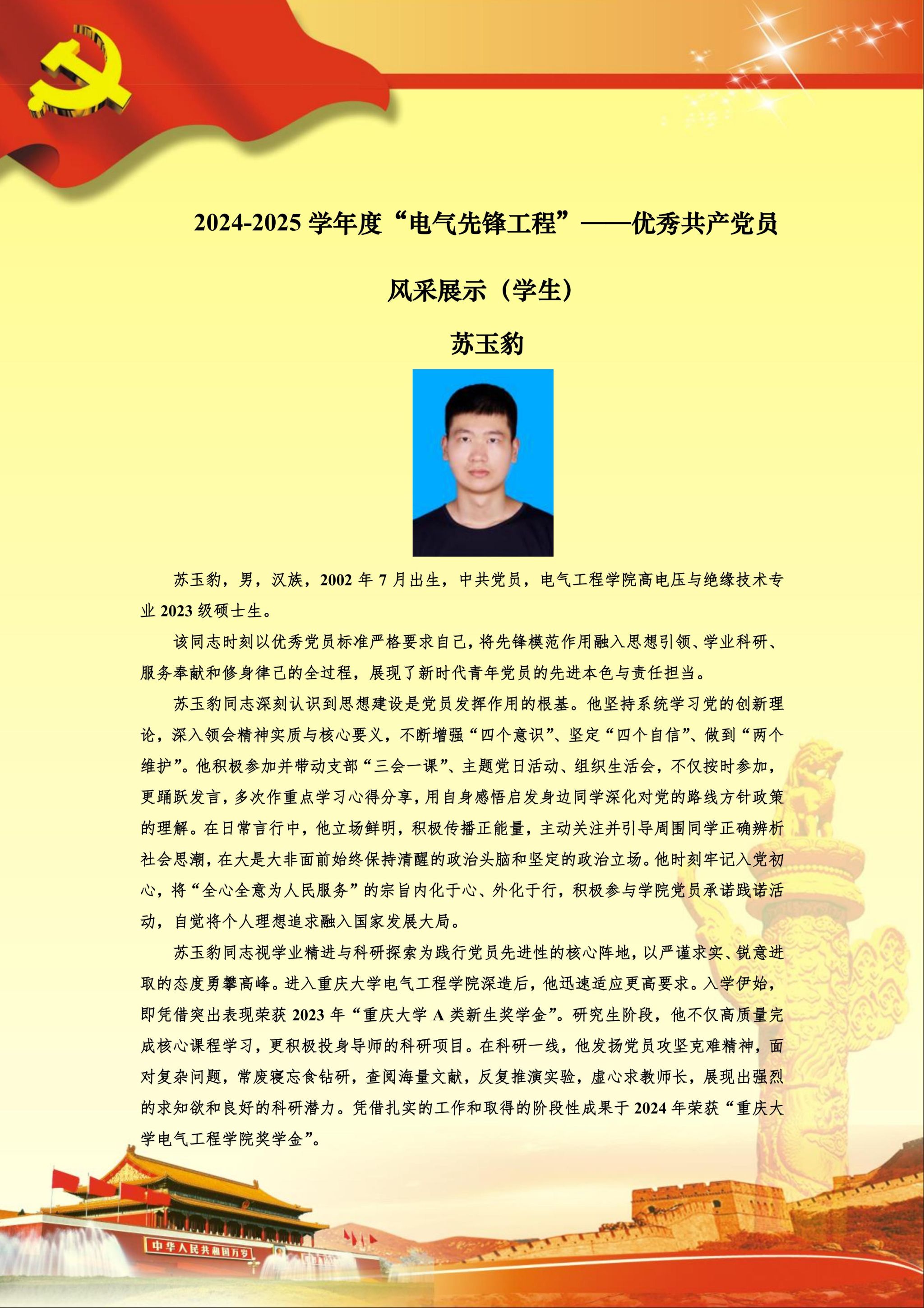 【党员风采】高电压与绝缘技术硕士生四支部苏玉豹