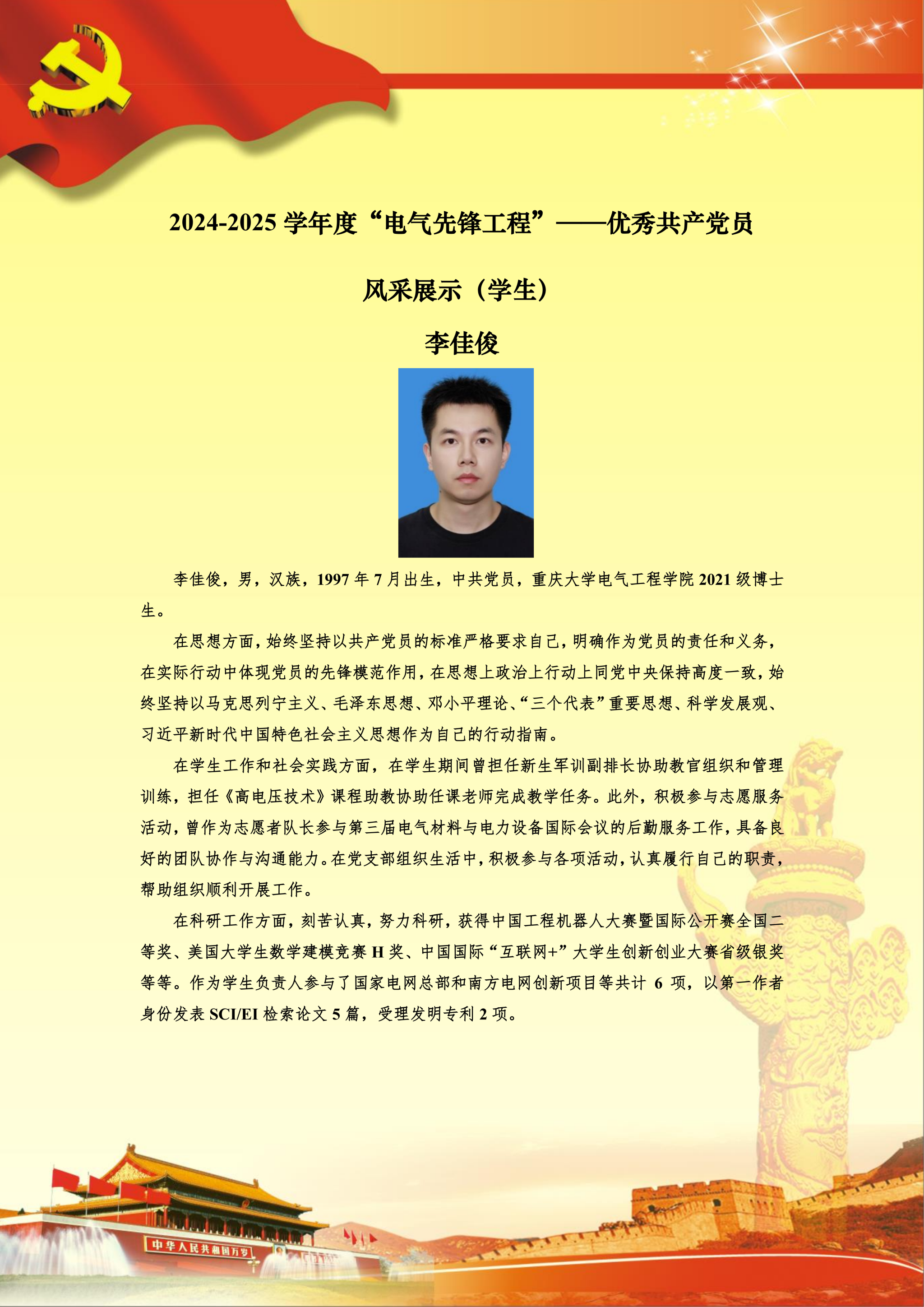【党员风采】博士生五支部李佳俊