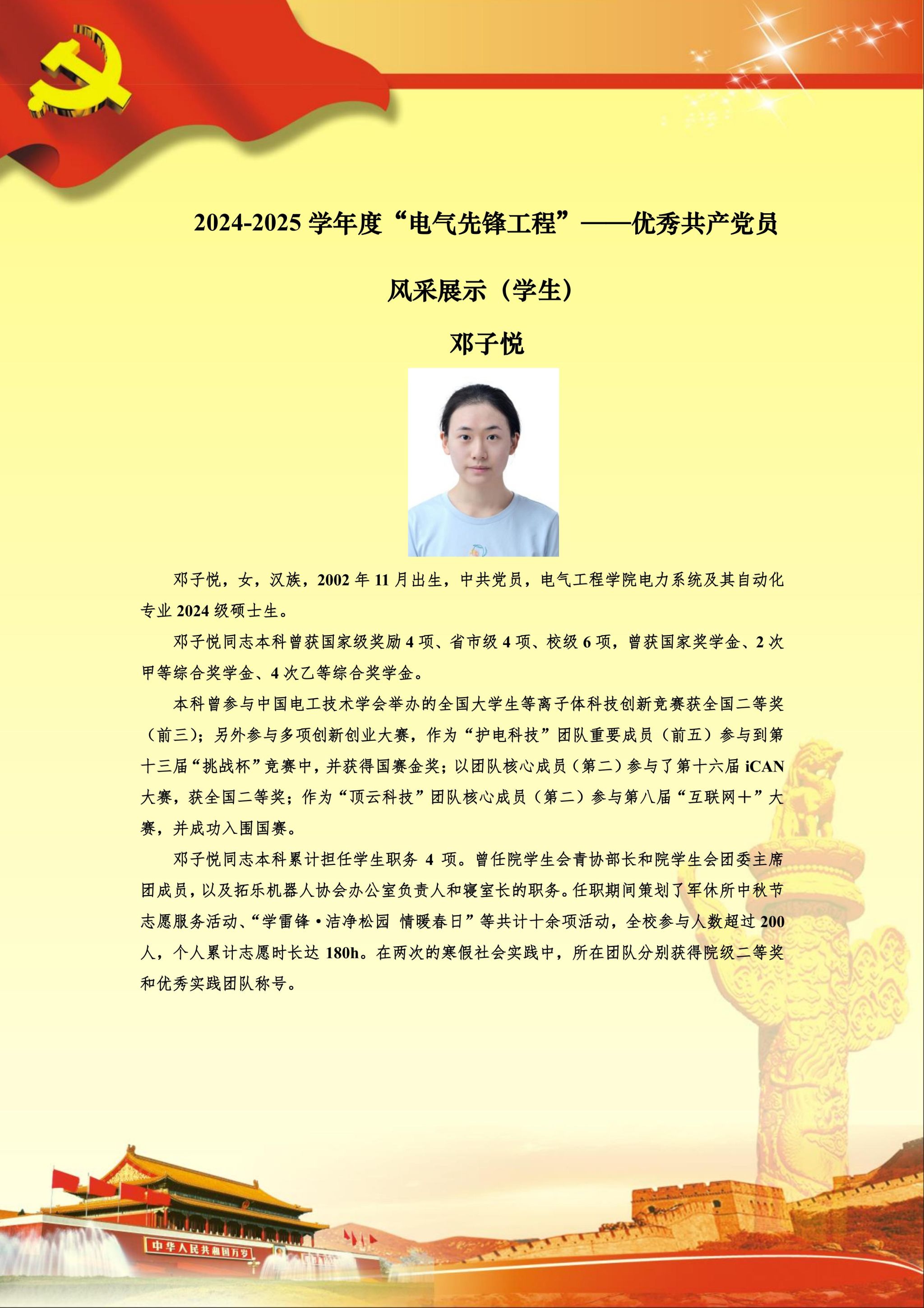 【党员风采】电力系统及其自动化硕士生一支部邓子悦