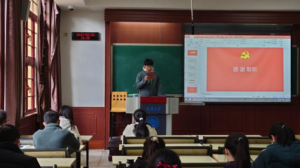 随后,第1党小组的刘睿萌同志和郑烨同志向参会人员传达了十九届六中全会精神,全体党员进行了《中共中央关于党的百年奋斗重大成就和历史经验的决议》文件的专题理论学习。该专题学习包含了历史中的重要决议、中国共产党的百年奋斗历程、中国共产党百年奋斗的历史意义、中国共产党百年奋斗的历史经验以及新时代的中国共产党五个方面。在学习过程中,两位同志适时对与会党员展开相关提问,通过良性的互动,极大提高了与会党员参与的积极性与学习的高效性。