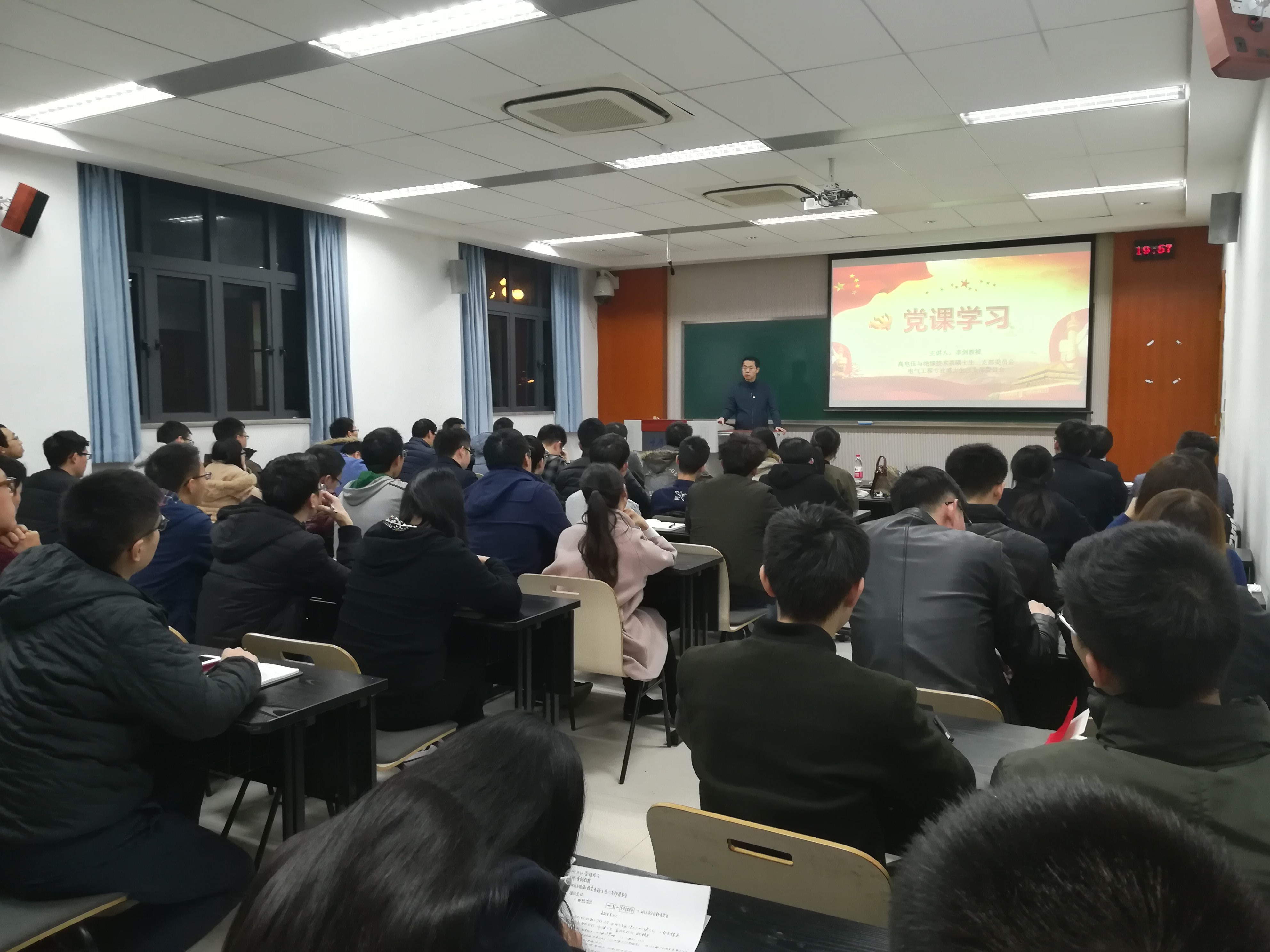 随后,李剑教授提到共产党员在为中华民族事业、为理想奋斗的同时,必须要做到不畏艰难、坚持不懈。在为理想奋斗的过程中,会有困难、艰辛、时间漫长看不到成效,李剑教授用长征精神鼓励我们,红军在长征途中表现出了对革命理想和事业无比的忠诚、坚定的信念,表现出了不怕牺牲、不畏艰难的革命乐观主义精神。同时,李剑教授用自身的留学经历,进一步阐释了不管遇到什么艰难,只要能够坚持不懈,并不断努力,总会柳暗花明又一村。随后,党课接近尾声,在雷鸣般的掌声中,李剑教授结束了今天的党课。