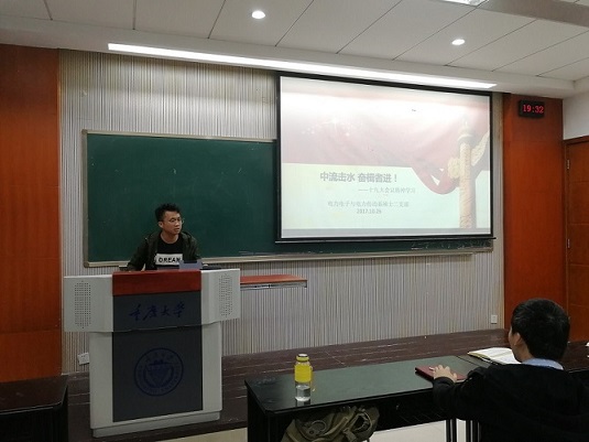电力电子与电力传动硕士生第2支部在八教111室举行了“学习十九大会议精神”主题活动。参加本次组织生活会的有正式党员13人,大会由2支部党支书张君主持。