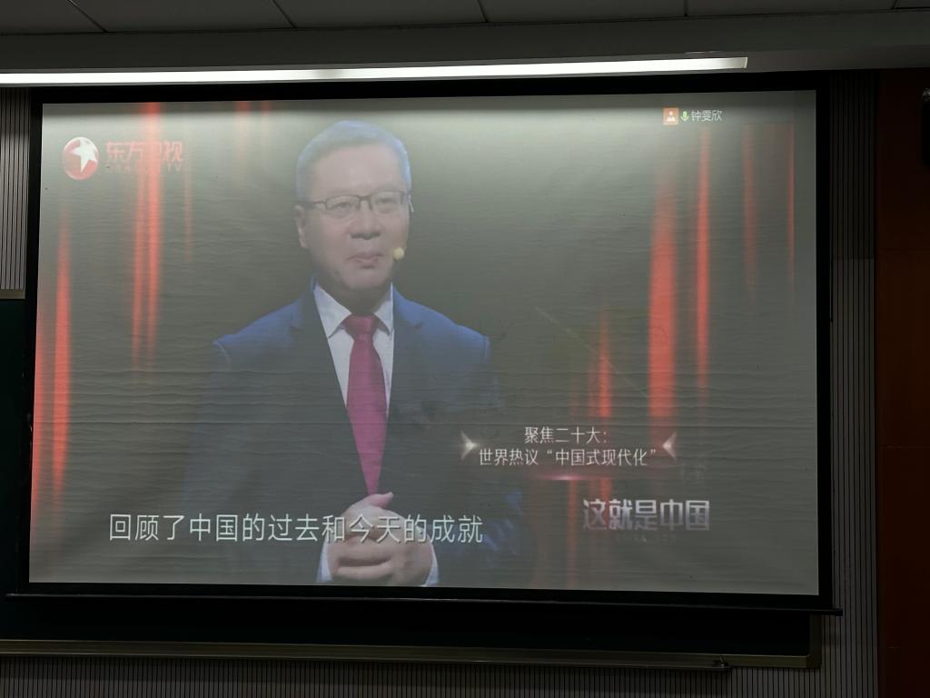 随后,大家通过一段短片,加深了对中国式现代化的了解。视频中复旦大学中国研究院院长张维为教授深刻解读了国内外不同媒体、各界人士对中国式现代化的报道,指出中国式现代化完全不同于西方国家以资本为中心、两极分化、物质主义膨胀、对外殖民掠夺的现代化道路,我们完全有理由对中国式现代化道路充满信心。视频学习之后,钟雯欣同志带领大家继续学习大力推进中国式现代化的一系列重大关系:在顶层设计与实践探索上,要做到远近结合、上下贯通、内容协调;在守正与创新方面,在守好中国式现代化的本和源、根和魂的同时需要积极识变、应变、求变,大力推进改革创新;在战略与策略、自立自强与对外开放、活力与秩序、效率与公平等重大关系上,均要做到统筹兼顾、系统谋划与整体推进。