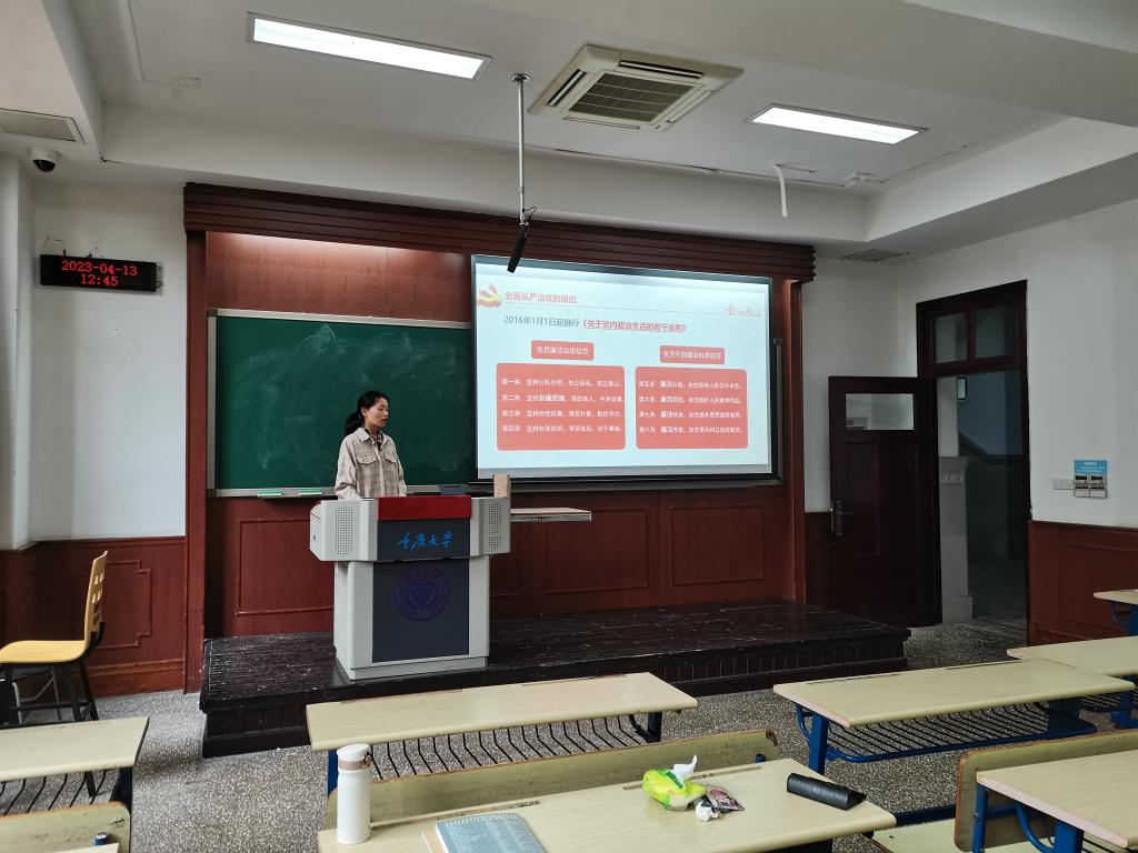 为进一步学习贯彻党的二十大精神,强化党员党性教育,提升支部成员凝聚力,提高党员思想水平,2023413日中午,本科二支部开展“全面从严治党”主题党日活动,本科二支部全体党员参加。