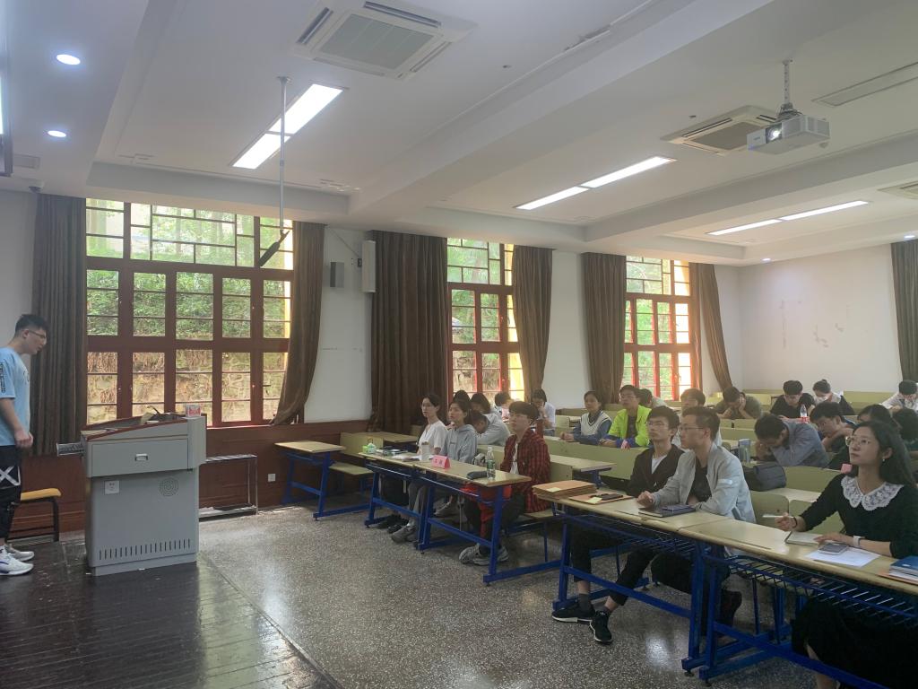 A区第五教学楼105开展“从群众中来,到群众中去”主题党日活动,支部书记胡力方及本科生二支部全体党员参会。