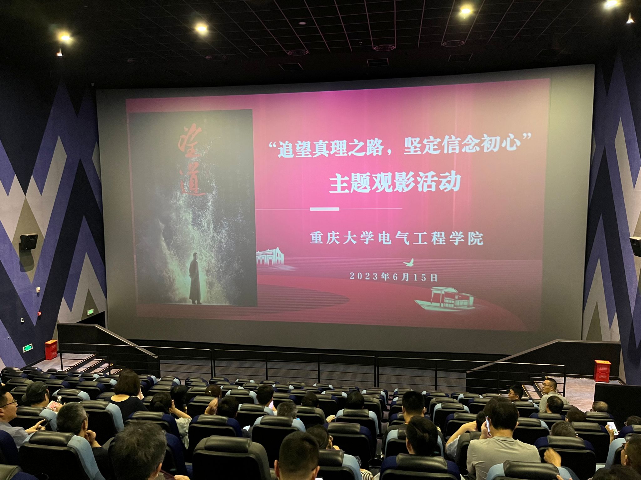 全体教职工及2023年新发展预备党员,前往重庆利美华胤巨幕影城开展“追望真理之路,坚定信仰初心”主题观影活动.