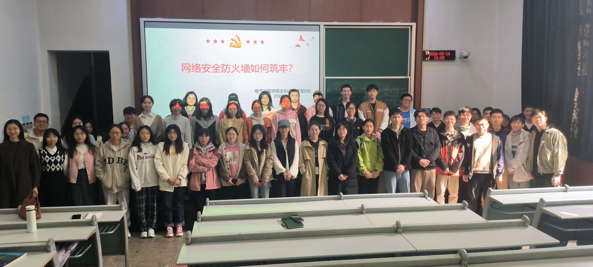 本科生二支部于A5102开展以“安全防火墙如何筑更牢?”为主题的主题党日活动。本次主题党日活动由高玉娇同志和韩威同志主持,支部全体党员参会。