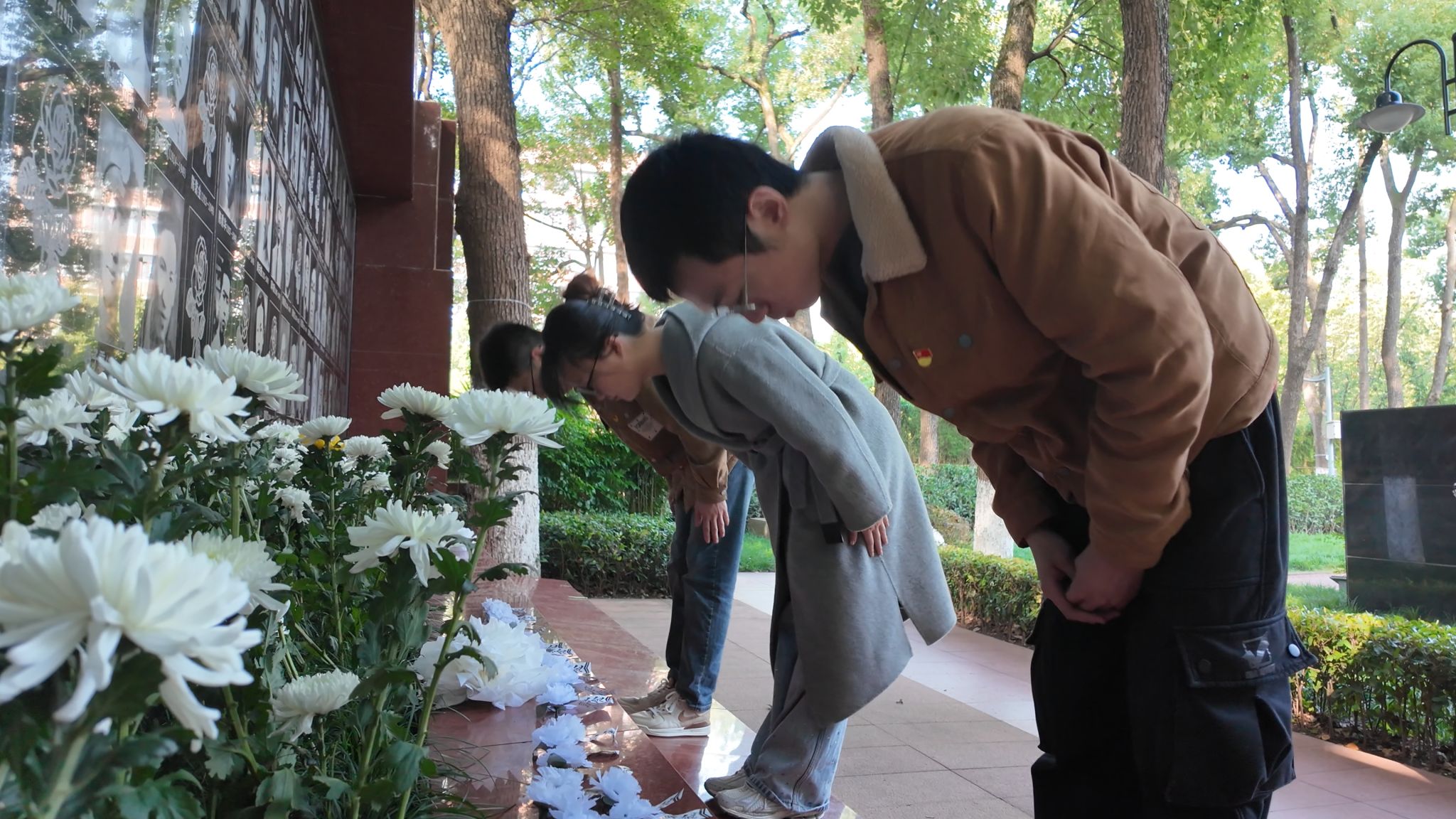 宣誓仪式后,党员们手持白菊,缓步走向烈士墓区,依次向殉难英烈敬献鲜花。大家低头默哀,追思先烈们为民族解放事业抛头颅、洒热血的峥嵘岁月,深切感悟红岩英烈坚定的革命信仰与无畏的牺牲精神。墓前松柏苍翠,白花素雅,无声诉说着对革命先烈的崇敬与缅怀之情。