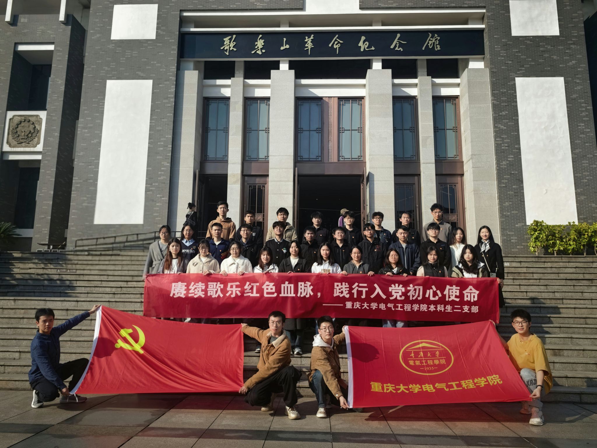 本科生二支部全体党员赴歌乐山烈士陵园开展主题党日活动。通过新党员入党宣誓、老党员重温入党誓词、献花祭扫、场馆研学等系列活动,缅怀红岩英烈事迹,传承红色革命基因,强化青年党员的初心使命与责任担当。