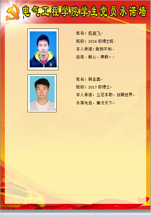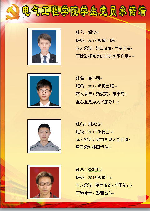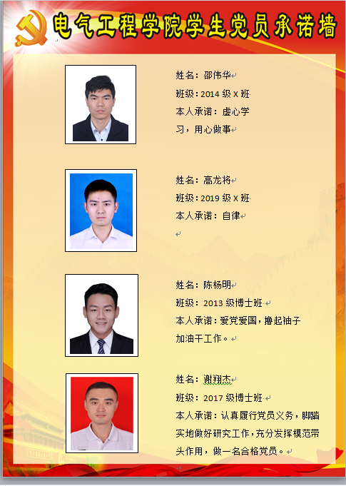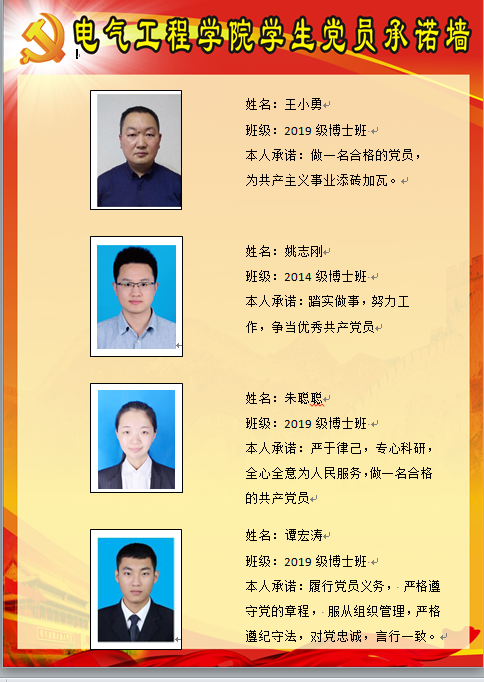 【承诺墙】电力电子硕士二支部党支部党员承诺墙