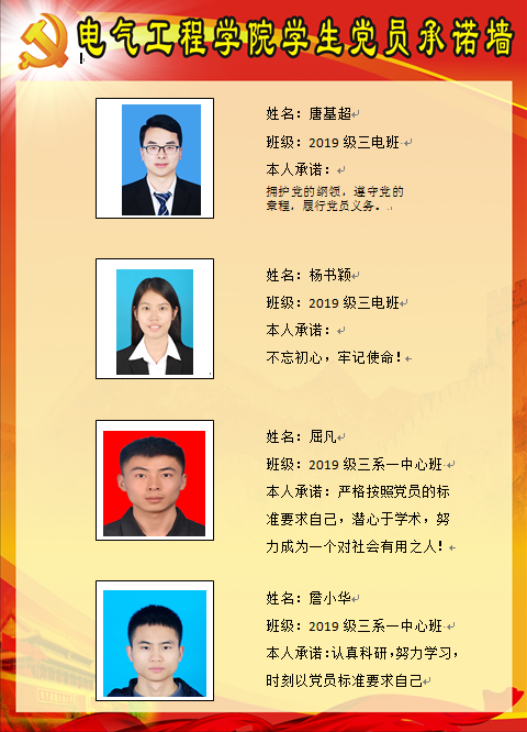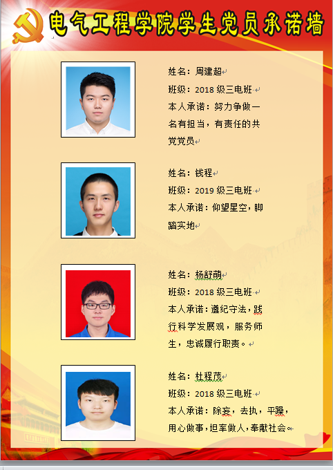 【承诺墙】电力电子硕士二支部党支部党员承诺墙