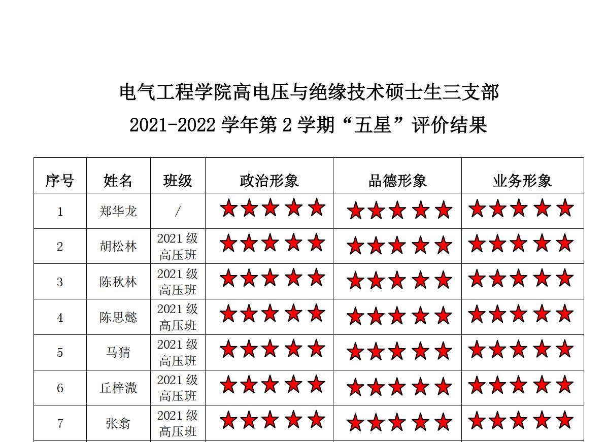 猫都论坛 高压三支部2021-2022学年第二学期“五星评价结果”