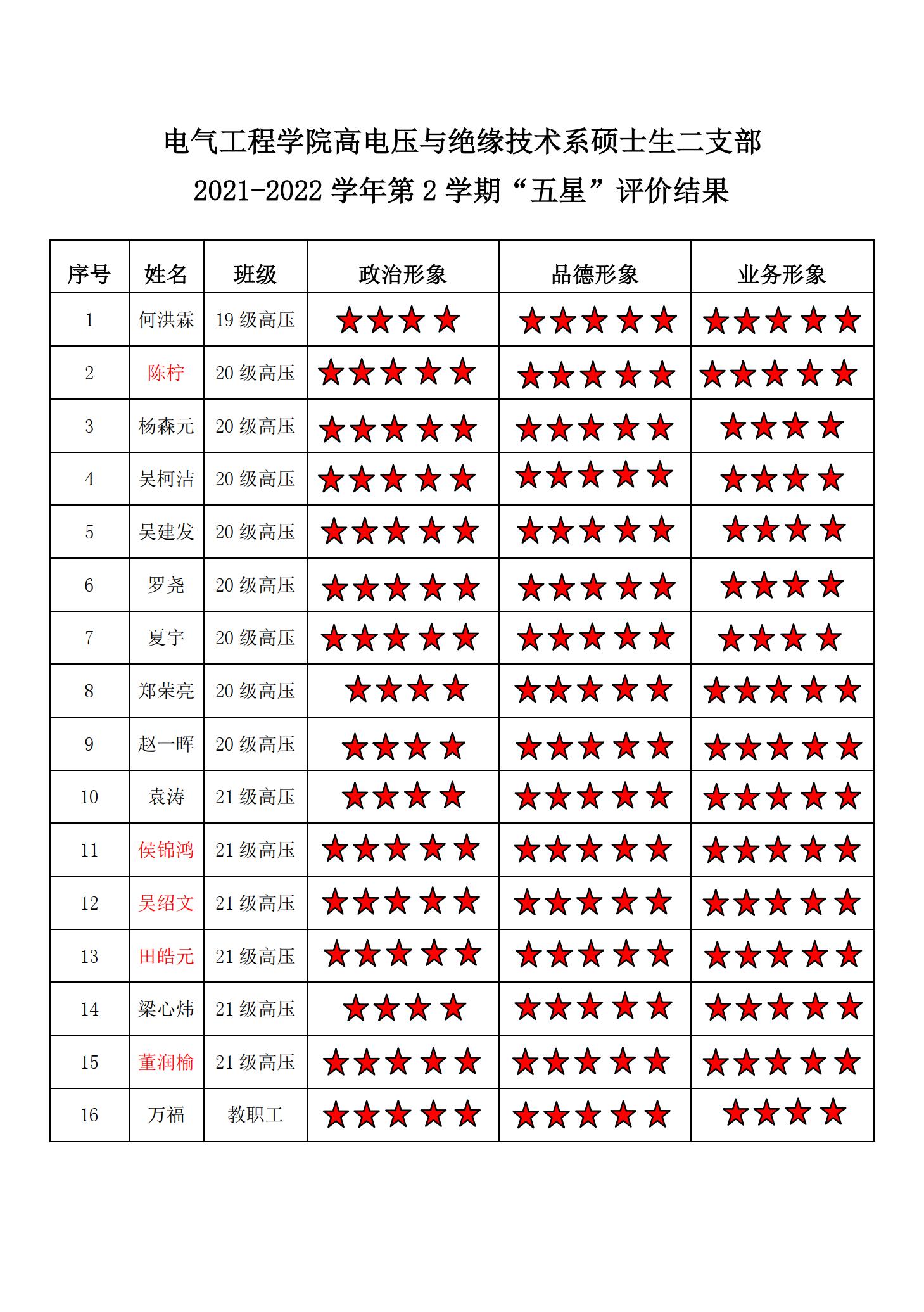 猫都论坛 高压二支部2021-2022学年第二学期“五星评价结果”