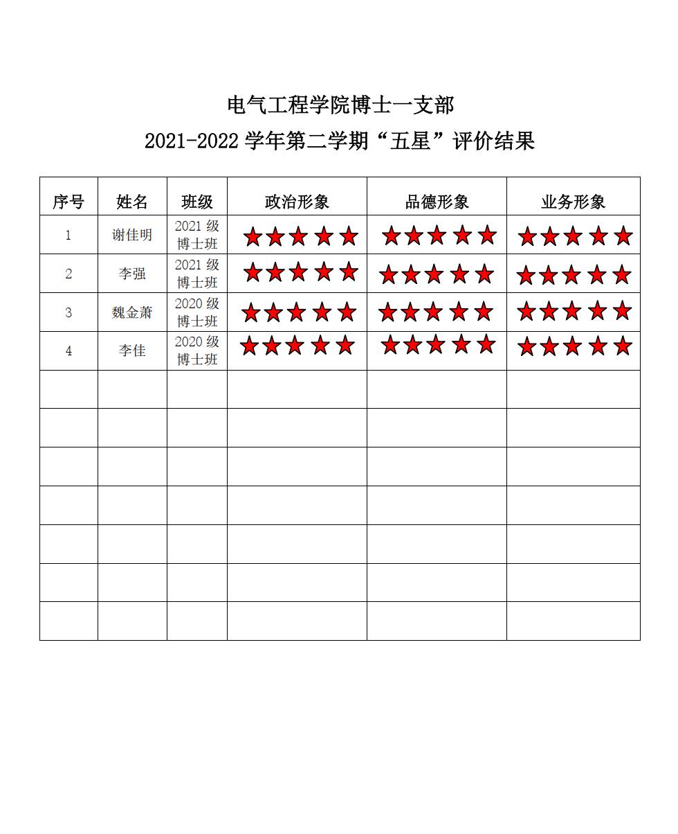 猫都论坛 博士生一支部2021-2022学年第二学期“五星评价结果”