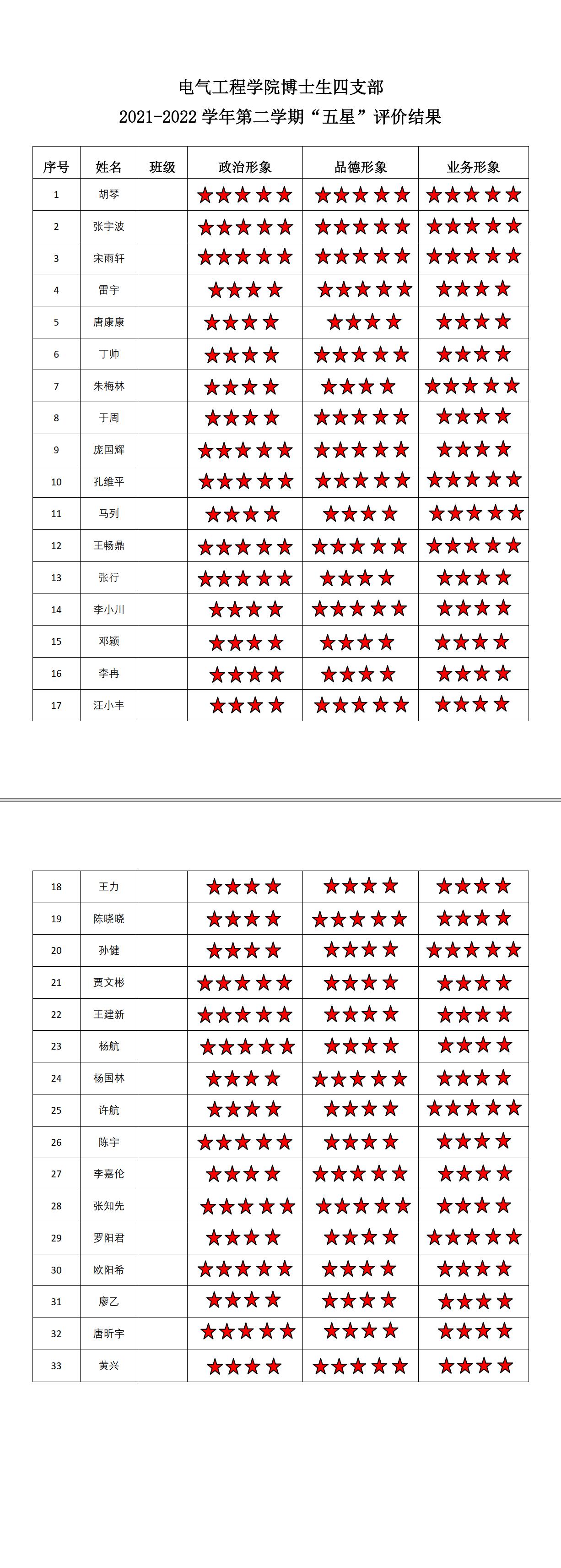 猫都论坛 博士生四支部2021-2022学年第二学期“五星评价结果”