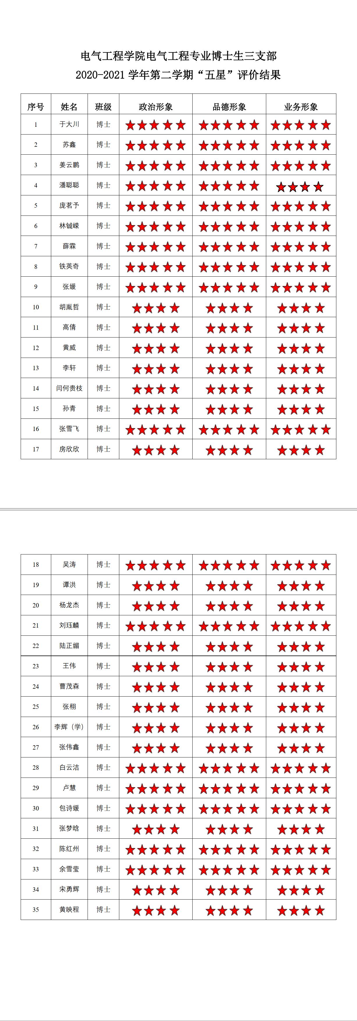 猫都论坛 博士生二支部2021-2022学年第二学期“五星评价结果”