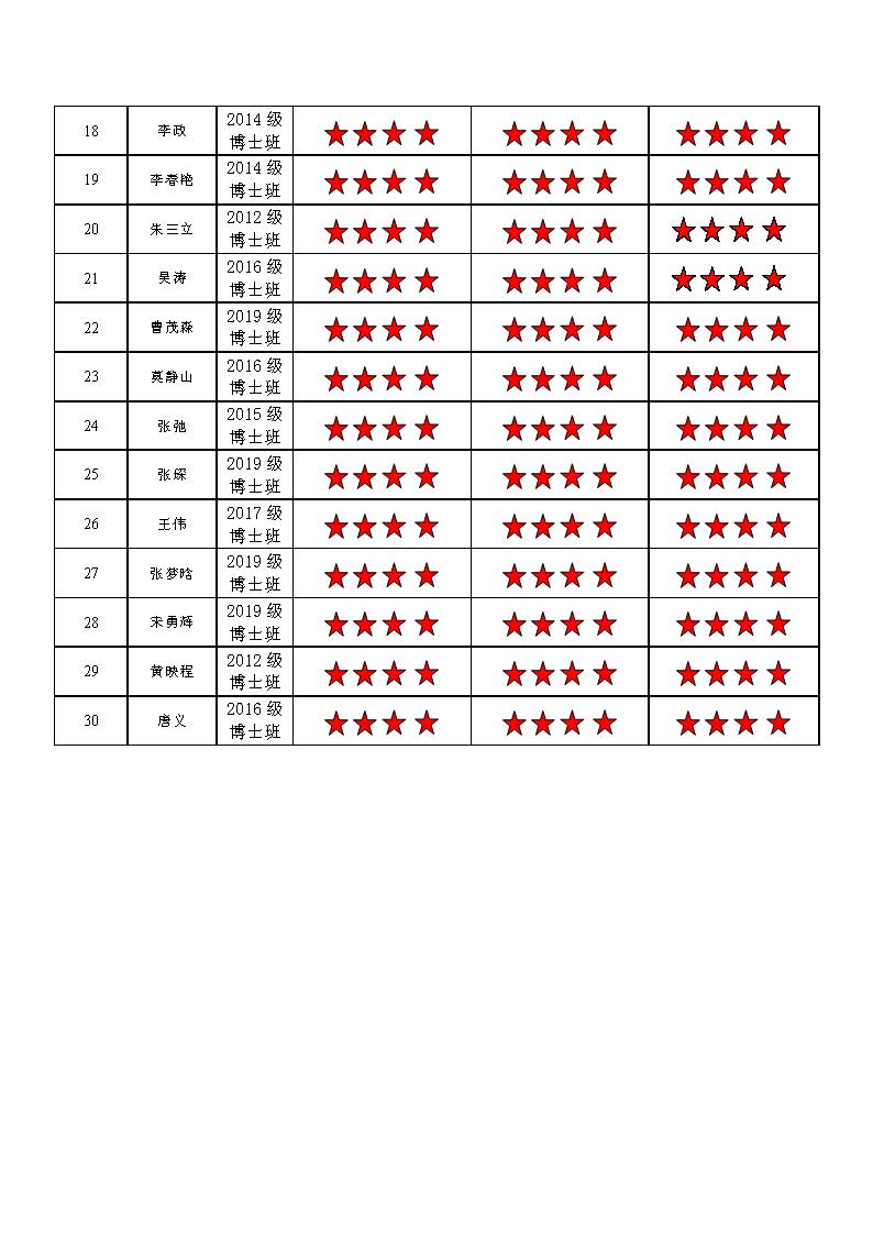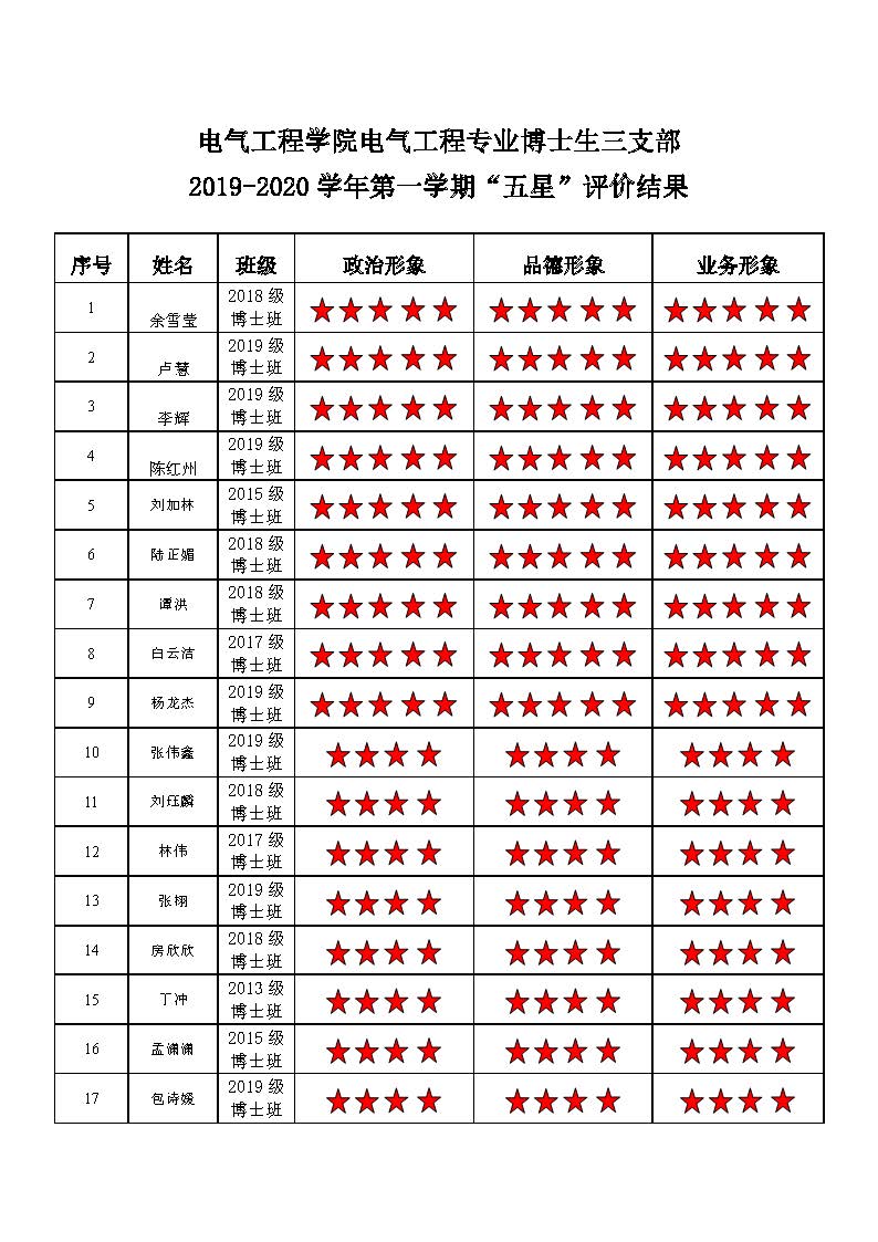 猫都论坛 博士二支部2019-2020学年第1学期“五星”评价结果
