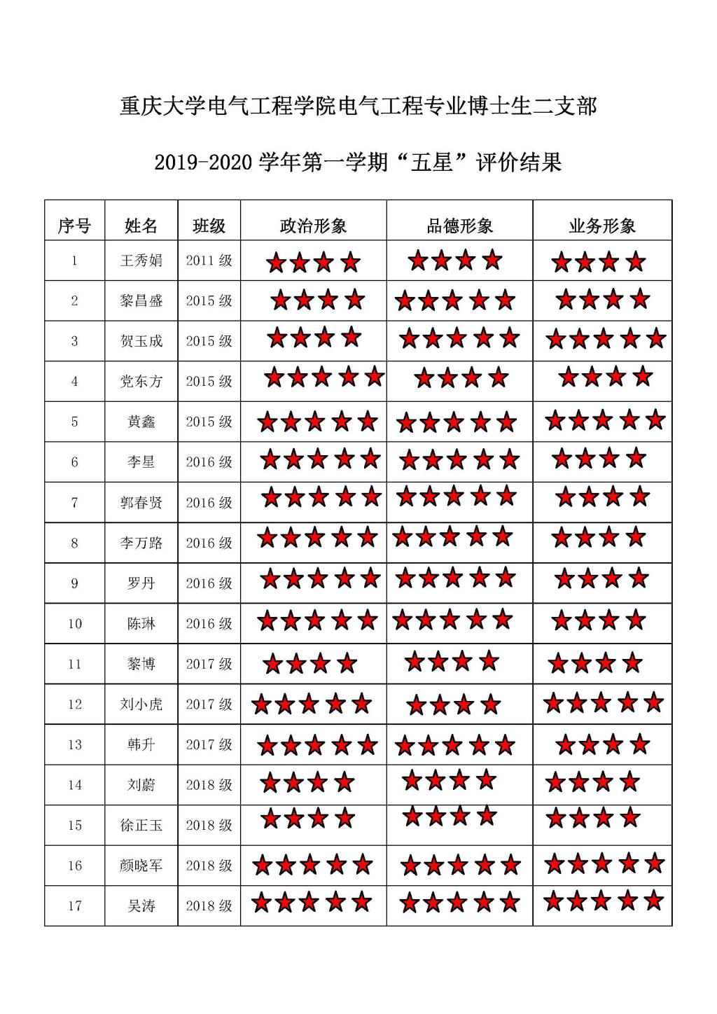 猫都论坛 博士二支部2019-2020学年第1学期“五星”评价结果