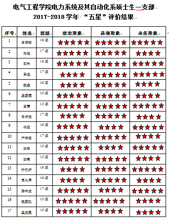 中共猫都论坛 电力系统及其自动化系硕士生一支部2017-2018学年 “五星”评价结果