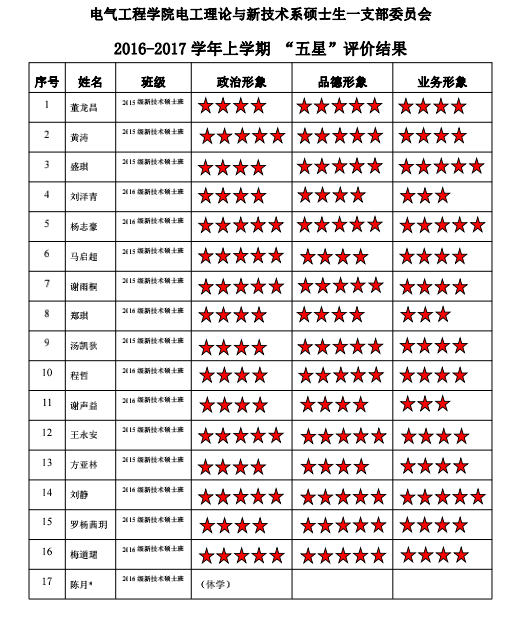 中共猫都论坛 电工理论与新技术系硕士生二支部委员会2017-2018学年 “五星”评价结果